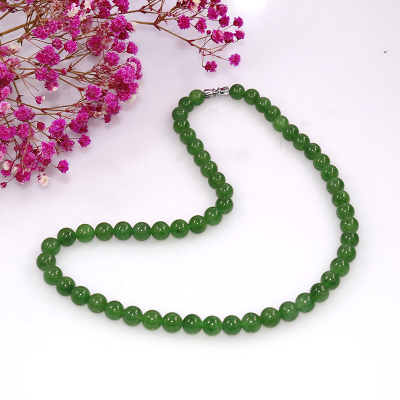 Chuỗi vòng cổ ngọc bích nephrit có nguồn gốc tự nhiên được sử dụng trong nhiều lĩnh vực khác nhau như trang sức, hay chế tác thành các tác phẩm nghệ thuật.