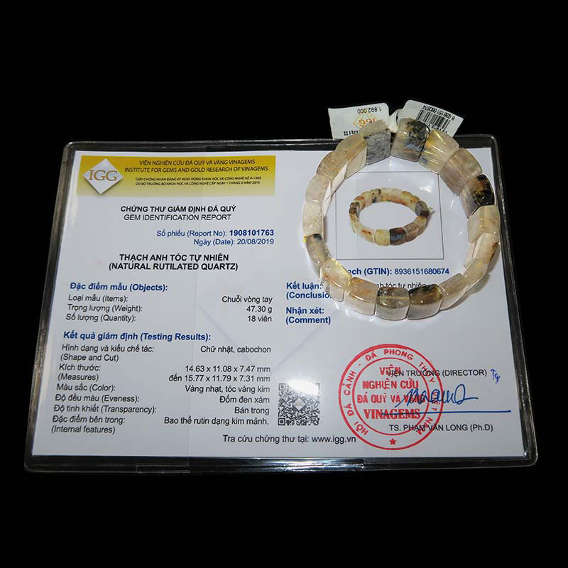 Chuỗi vòng tay được chế tác từ thạch anh tóc vàng có nguồn gốc tự nhiên, phù hợp với những người mệnh thổ và mệnh kim.